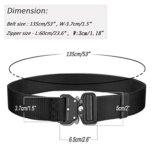 • DIMENSION: Tactical belt size (without buckle): Belt length: 135CM (53"); Belt width: 3.7CM (1.5"); Belt thickness: 0.255CM (0.11"), Suitable for waist circumference 37 to 46 inches Buckle size: 5.7CM (2.24"), Thickness: 0.9CM "(0.35"); Buckle width: 5CM (1.97"), Maximum load 660lb / 300kg