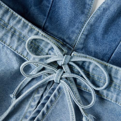 Women Y2K Denim Vest Vintage Sexy Sleeveless Backless Tie Back Tank Top Halterneck Jean Vest Top Streetwear 2