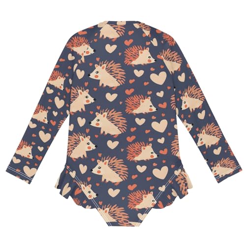 Hedgehog and Love Girls Long Sleeve Swimsuit Rash Guard One Piece Bathing Suits Zipper 3-12T 3