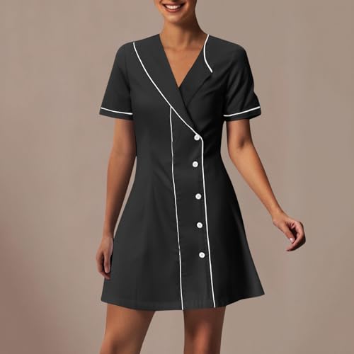 More information about Women Nurse Dress Button Down Short Sleeve Scrub Uniforms Housekeeping Spa Pocket Work Dresses 2025 Workwear