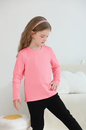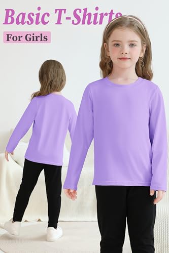 • Classic and versatile: these girl's cotton crew neck girls' basic long-sleeve T-shirts can be worn alone or layered under uniforms; simple and stylish, the girls' basic long-sleeve tees can be paired with various styles of jackets, school uniforms, casual wear, loungewear, and more; These T-shirts are versatile and suitable for various activities, providing warmth without bulk, making them nice for cold days; these girl's long sleeve T-shirts are a staple in your children's wardrobes