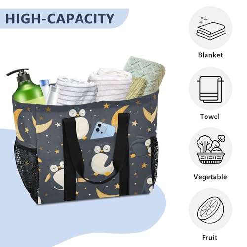 YETTASBIN Penguin Large Foldable Travel Tote Bag, Lightweight Waterproof Swim Pool Bag with Handles & Pocket for Beach Outdoor, Reusable Grocery Bag for Kitchen, Shopping 7