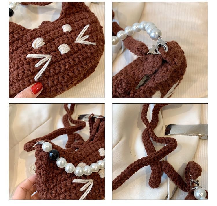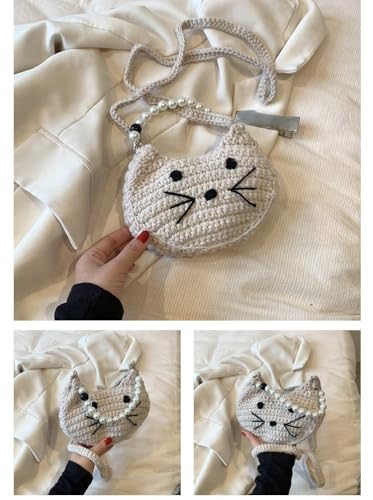 More information about Crochet bag cat coin purse crochet animal crossbody bag, pearl chain crochet bag handbag, crochet shoulder bag