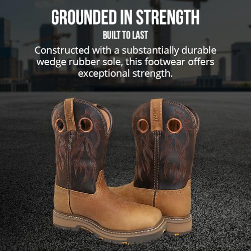 • DURABLE – Built to last, these men's work & safety boots are crafted from insulated 100% genuine cowhide leather. Featuring a rugged, classic style and composite toe work boots for men construction, they provide exceptional reliability. Perfect as working boots for men, these men's work boots are designed for strength and durability. Whether you’re on the jobsite or tackling heavy tasks, these mens boots for work deliver the performance you need to get the job done.