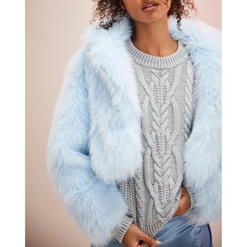 Womens Faux Fur Coats Fluffy Cropped Jackets Trendy Long Sleeve Open Front Winter Jacket Shaggy Short Coat