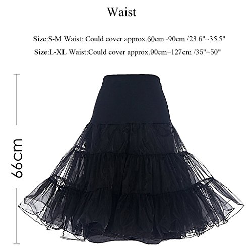 • Petticoat's Length reaches about 26''; The waist size of size S-M can cover 23.6"~35.5"; The waist size of size L-XL can cover 35"~50".