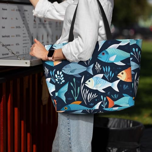 Fishes Pattern Beach Bags For Women Large Waterproof Sandproof Beach Tote Bag Pool Bag Lightweight Zipper Carry On Bag For Gym Travel Vocation