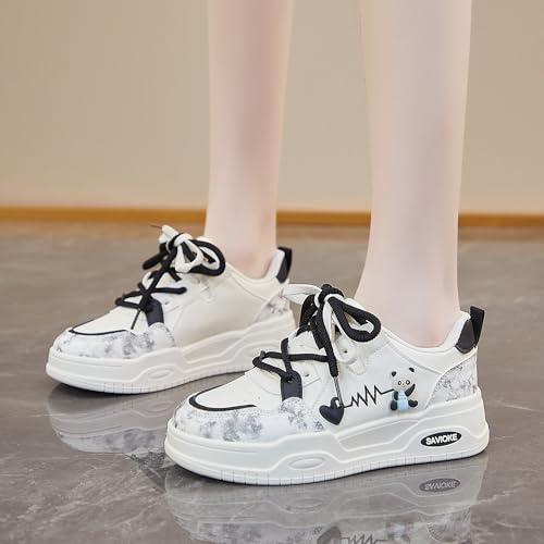Origin: ImportedSole material: RubberOuter material: Faux LeatherClosure type: Lace-Up【Leather Upper】Women's casual and fashionable athletic shoes are made of waterproof faux leather, which is easy to clean; Lining: Mesh, women's skate shoes are suitable for all seasons【Fashion Design】These cute sneakers feature a trendy round toe silhouette and letter prints, adding personality and recognition, and the confident design and collision of multiple colors add a retro atmosphere【Anti-slip】These ladies tennis shoes feature a wear-resistant and non-slip rubber outsole, providing excellent grip, ensuring durability, stability, and confident walking wherever you go【Comfortable】The cushioned memory foam insole and lining conform to the unique shape of your foot, and the classic adjustable shoelace design is easy to wear, and womens walking shoes provide a fit that allows you to relax all day【Simple Classic Design】The simple and classic white sneakers for women shoes will never go out of style and can be easily matched with any casual clothing, jeans, T-shirts, dresses, and daily wear Perfect for everyday use. finest materials and excellent craftsmanship ensure long-lasting durability.