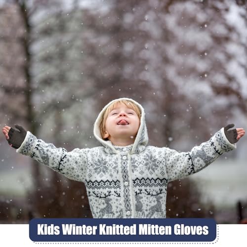More information about Yahenda 4 Pairs Kids Mittens Fingerless Gloves Winter Knitted Convertible Mittens for Toddler Boy Girl Aged 5-10