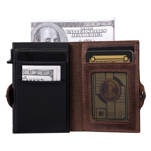 Brand: Conceal PlusColor: ID Window - Brown Distressed Genuine LeatherMaterial: AluminumStyle: Minimalist - Holds 4-6 CardsPattern: SolidPop Up Wallet Capacity: 6 flat non-embossed credit cards ( or 4 raised embossed). You can store additional cards and cash in the inner pockets and cash holder.Compatibility: The magnetic pop up card holder for Magsafe is ONLY compatible with iPhone 15/14/13/12 series and official Magsafe cases.3,000g Strong Magnetic Lock: More than 2X the strength of the official magnetic wallet. The Card Blocr magnetic iPhone wallet features strong built-in magnets that allow it to effortlessly snap into place on the back of your iPhone and even attach on top of official Magsafe cases. Patent Pending card mechanism prevents your cards from falling out. No matter how you hold your phone, the cards will stay in the metal card holder safely.RFID Blocking Metal Wallet: CNC milled RFID blocking aerospace grade aluminum blocks all scanning attempts. Best RFID card holder on the market to protect your identity from RFID scanning thieves.Perfect Gift: Birthdays, graduations, or any holiday for friends or loved ones. Card Blocr wallets come in an elegant gift box. Perfect for everyday use. High quality materials and excellent craftsmanship ensure long-lasting durability.