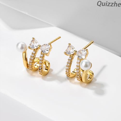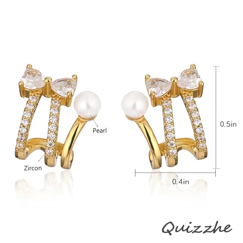 More information about Trendy Claw Silver Dainty Bow Rhinestone Earrings - Shiny CZ Half Hoop Studs, Piercing Cartilage Wrap, Tiny Chic Pearl Illusion Jewelry for Teen Girls