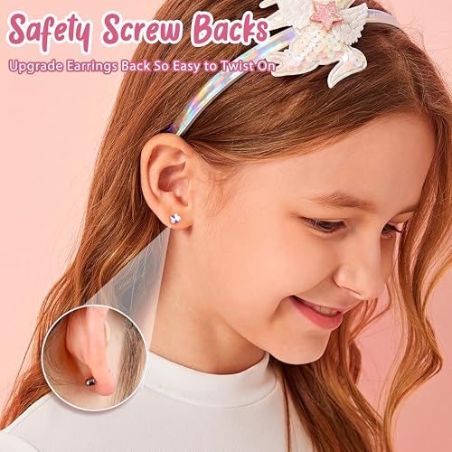 Jstyle Hypoallergenic Earrings for Girls Women Surgical Stainless Steel Earrings for Sensitive Ears Screw Back Earrings Set Cute Girls Todder Earrings Kids Earrings Jewelry for Teen Girls