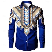 popular ! Men's Ethnic Indian Culture Navajo Pattern Shirt Button Up Shirt Casual Dress Shirt Long Sleeve Vintage Retro Vacation Daily Streetwear Summer Spring Turndown 3D Print Collared Shirts Dark Blue