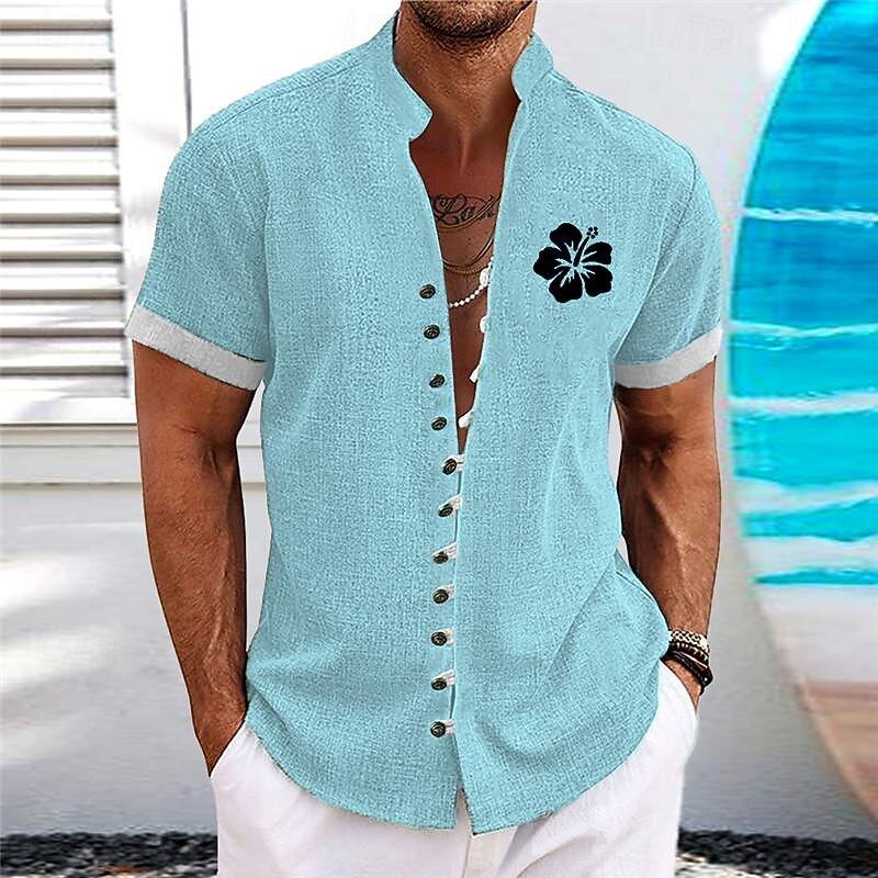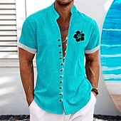 Highlights [Fabric] : Crafted from high-quality polyester, this shirt offers a breathable, micro-elastic fit that's perfect for warm summer days. Its lightweight nature ensures comfort and ease of movement, making it an ideal choice for casual, outdoor activities. [Fit] : Designed with a regular fit, this shirt provides a balanced and relaxed look. The short sleeves and standing collar offer a current silhouette that effortlessly pairs with a variety of casual bottoms, from shorts to relaxed pants. [Design Highlights] : Featuring a stunning floral and tropical flower print, this shirt captures the essence of Hawaiian style. The button-down front adds versatility to its styling, while the mandarin collar offers a touch of refinement. Contrasting white sleeve cuffs enhance its special appeal, making it a standout piece in any summer wardrobe. [Occasions] : Perfect for daily wear, vacations, and outdoor activities. Whether you're heading to a beach resort or enjoying a relaxed day out, this shirt matches the laid-back vibe of summer, adding a splash of color and style to your day. [Size Range] : Available in a wide range of sizes including S, M, L, XL, 2XL, and 3XL, ensuring a comfortable fit for adults of various body types.