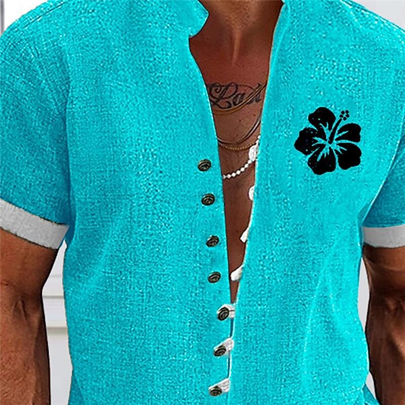 popular ! Men's Floral Tropical Flowers Summer Hawaiian Shirt Aloha Shirt Printed Shirts Short Sleeves Shirt Standing Collar Hawaiian Resort Outdoor Vacation Daily Wear Blue Green Light Blue S M L