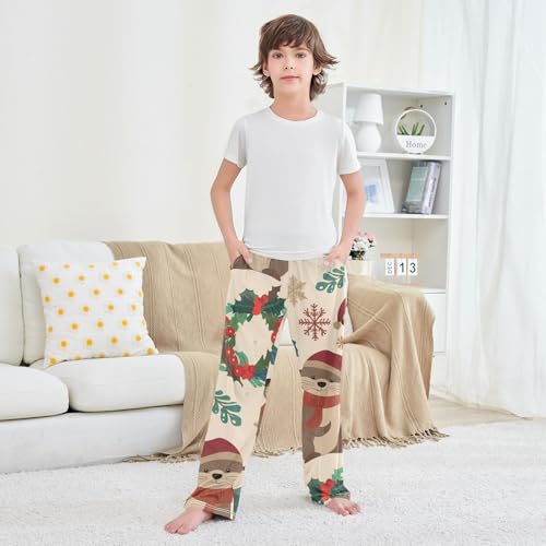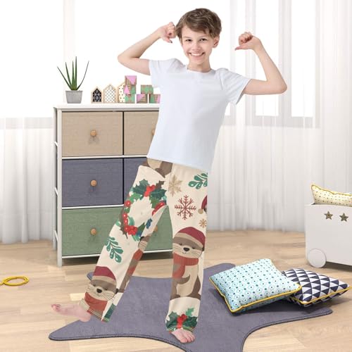popular ! ZZXXB Otter Holly Leaves Boys Long Pants velvety Trousers Elastic Waist Kids Lounge Bottoms with Pockets S-XL