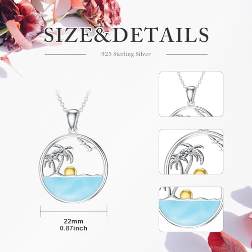 More information about Palm Tree Necklace for Women Sterling Silver Ocean Wave Pendant Necklaces Natural Larimar Gemstone Pendants Jewelry Gift for Mom Wife Girlfriend