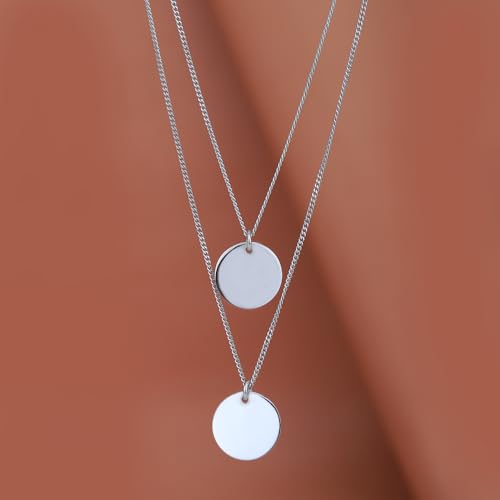 Sterling Silver Jewelry Rhodium Plated with 925 Stamp - Double-Row Disc Pendant Necklace for Women - 16" long + 2" Extender