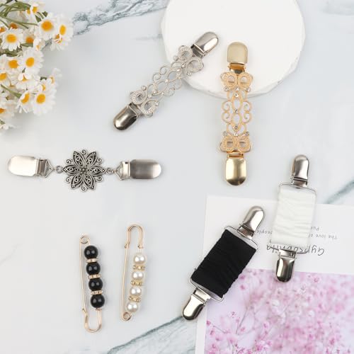 Material: Alloy SteelMetal type: AlloyClasp type: ClipsGem type: No Gemstone【COMPLETE SET OF DIVERSE CLIPS】 The package included 7 PCS (5 cinch clips + 2 tightener pins) in 4 different styles, perfect for securing sweaters, dresses or shawls with a modern touch.【UNIQUE & ATTRACTIVE DESIGNS】 These cinch clips feature 4 elegant styles, adding a fashionable accent to your outfits. They blend seamlessly with any clothing, enhancing your look effortlessly.【LIGHTWEIGHT & SECURE HOLD】 Made of high-quality metal, these clips are sturdy and lightweight, offering a strong grip without damaging fabrics. They stay firmly in place while keeping your garments neatly cinched.【EASY TO USE & STYLISH】 Simply clip and go! These cinch clips are quick to attach, instantly improving fit and adding a chic decorative touch. Perfect for both casual and formal wear.【VERSATILE & MULTI-FUNCTIONAL】 Use these cinch clips to adjust baggy tops, tighten loose sweaters, or add flair to dresses and shawls. The included tightener pins provide extra functionality for different styling needs. Perfect for everyday use. supreme materials and excellent craftsmanship ensure long-lasting durability.