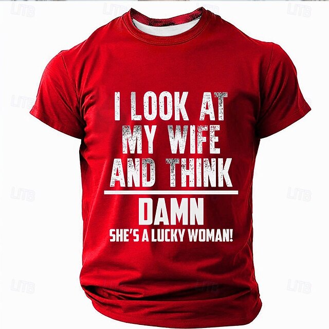 popular ! Men's Funny Graphic T-Shirt - 'I Look At My Wife And Think Damn She's A Lucky Woman!' Sarcastic Relationship Husband Tee