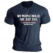 Highlights [Fabric]: Crafted from 100% high-quality cotton, this T-shirt offers a soft, breathable, and comfortable feel, making it perfect for everyday wear. The micro-elastic fabric ensures a slightly flexible fit that adapts to your movements. [Fit]: Featuring a regular fit, this T-shirt is designed with a crew neck and short sleeves, offering a traditional and relaxed style suitable for any casual occasion. Its versatile design pairs effortlessly with jeans, shorts, or casual trousers. [Design Highlights]: The standout feature of this T-shirt is its humorous graphic slogan, boldly displayed on the front. With eye-catching white and red fonts, it delivers a playful message: My people skills are just fine. It's my tolerance to idiots that needs work. [Occasions]: Ideal for daily wear, this T-shirt is perfect for a variety of casual settings. Whether you're out running errands, meeting friends, or enjoying a relaxed day at home, it adds a touch of humor and style to your look. [Size Range]: Available in a range of sizes from M to XXL, ensuring a comfortable fit for various body types. Choose a size that suits your preferences for a perfect fit. Available colors include Blue, Black, Green, and Light Grey. Perfect for everyday use. first-class materials and excellent craftsmanship ensure long-lasting durability.