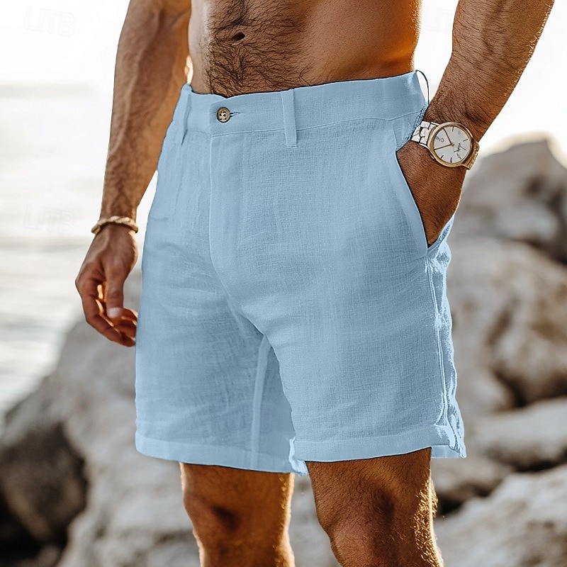 $22.99 - Men's Shorts Linen Shorts Dress Shorts Summer Shorts Beach Shorts Pocket Buttons Straight Leg Plain Comfort Breathable Knee Length Outdoor Casual Daily Fashion Streetwear White Navy Blue Inelastic 2025. Shop for cheap Holiday online? Buy at lightinthebox.com on sale today!