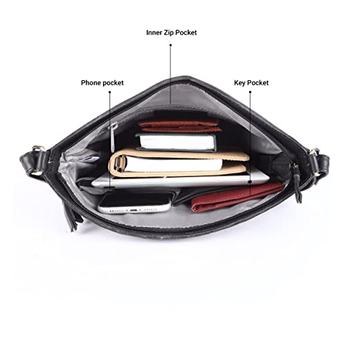 Fabric type: Genuine LeatherOrigin: ImportedClosure type: ZipperLining: Polyester100% GENUINE LEATHER: Handmade in INDIA by skilled craftsman, using genuine leather, soft smooth nylon interior and made with attention to details. Crafted from 100% oil-rich genuine leather, our crossbody bags add an elegant touch to your wardrobe. This crossbody bag has a smooth leather-like feel and smell which gets softer and better with every use. It is designed to resist wear and tear making it a versatile choice for your day to day use..SIZE & Dimension: This is a LARGE cross body bag and the dimensions are 12.2” L x 11 W x 2.5” H. The leather strap is fully adjustable that has a length of 28 inches in full and a width of 0.6”.STYLISH AND FUNCTIONAL: The Lederbuck Terry Leather Crossbody bag is your new go-to bag. It has 2 Front zipper pocket with, 1 central zippered compartment with zip pocket inside 1 phone pocket and 1 key pocket. The back has one zipper pocket and an additional pocket for phone for easy access. The main compartment can fit your valuables such as iPad (7.9 Size), car keys, small makeups, wallet, charger, etc.HIGH-QUALITY CROSSBODY BAG: Enjoy the perfect mix of durability, softness, and utility with our women’s cross body leather bag. Made with 100% genuine leather, each stitching on the bag is sewed with special care by professional artisans to make it timeless, lightweight, and fashionable. Every bag goes through a series of quality checks to ensure the finest is delivered to you. The casual-cool over the shoulder look of this bag brings a stylish flair to all your looks.IDEAL GIFT: This bag is perfect for gifting to your loved ones, on any occasions. Whether it’s Valentine's Day, Mother’s day, Easter, Christmas or Birthdays and Anniversaries, this is the perfect gift option for all occasions.WHY CHOOSE US: We know you'll love our handbag as much as we do, if for any reason you're not 100% SATISFIED, let us know and our customer service team will make things right with a refund or a free replacement, whichever you prefer. Perfect for everyday use. first-class materials and excellent craftsmanship ensure long-lasting durability.
