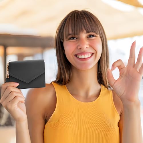 Brand: AfitLuluColor: BlackMaterial: LeatherStyle: ClassicPattern: Solid【Premium Material】The card wallet is made of PU leather with smooth surface. It will reflect shimmering light under strong light and looks textured. Gold-colored hardware clasp is sturdy and durable. The edges are neatly stitched for long term use.【Optional Colors】Available in pink and black colors, versatile and perfectly match with all kinds of outfits. The classic colors never go out of fashion, and the elegant tassel design adds femininity.【Snap Closure】 The female wallet features a snap closure, a design that makes good use of space and helps you save time organizing your cards. Just one snap will help you secure your stored items.【Portable Size】11.5*9*2cm / 4.5*3.5*0.78inch, weighing only 46 grams, the wallet won't take up too much space in shopping bags, backpacks, or handbags. It won't be a burden to take it out with you.【Exquisite Gifts】The women's wallet is simple and modern, it is a perfect gift for female friends and family, you can give it to your girlfriend, mom, friend, daughter, sister, or colleagues, they will be very happy. Perfect for everyday use. first-class materials and excellent craftsmanship ensure long-lasting durability.
