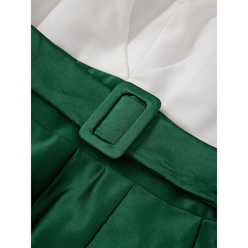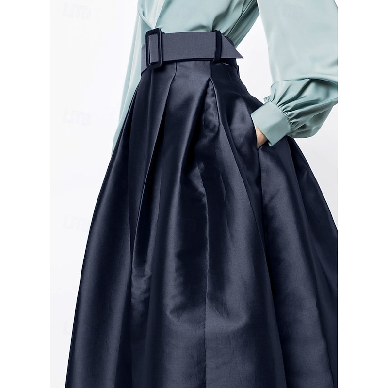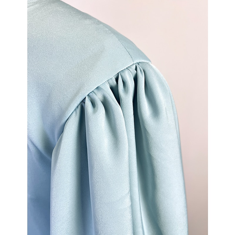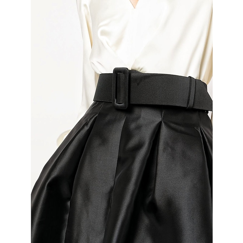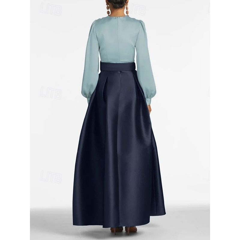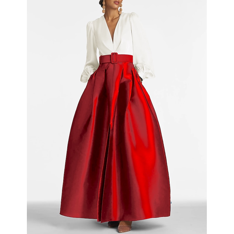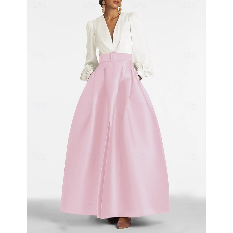 More information about A-Line Evening Gown High Split Dress Formal Wedding Guest Floor Length Long Sleeve V Neck Belt / Sash Satin with Pleats Slit