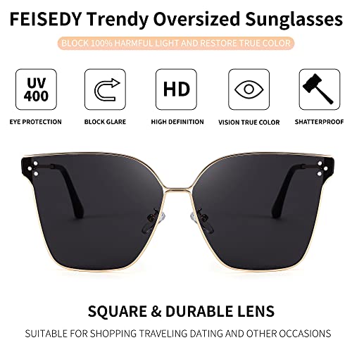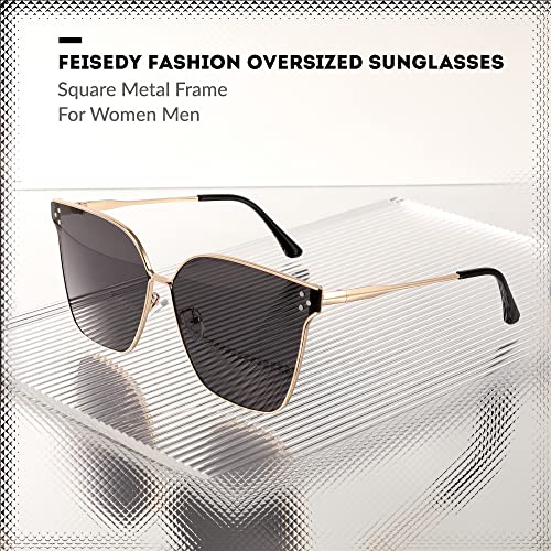 More information about FEISEDY Women Trendy Sunglasses Oversized Square Fashion Designer Style Large Metal Sun Glasses Men B2362