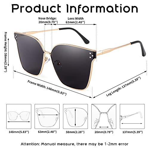 • supreme Metal Frame - This large vintage square sunglasses is made of stainless steel material, adding a textured shine and clarity of color. No chemical odor. After touching and comparing, you will find it worth it.