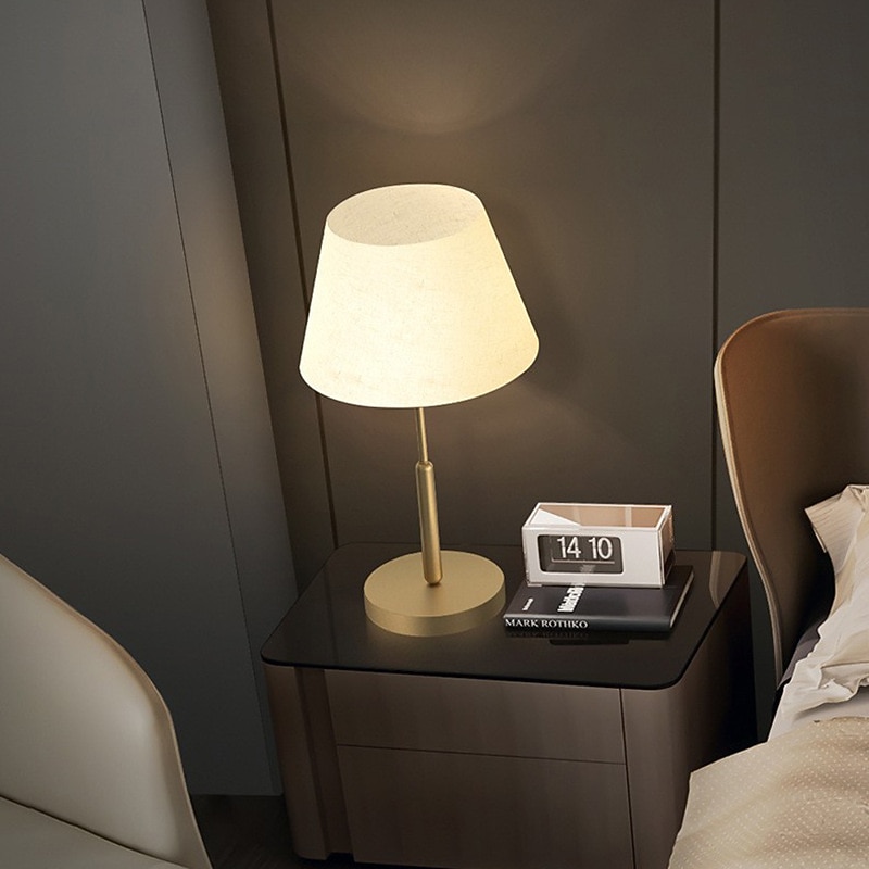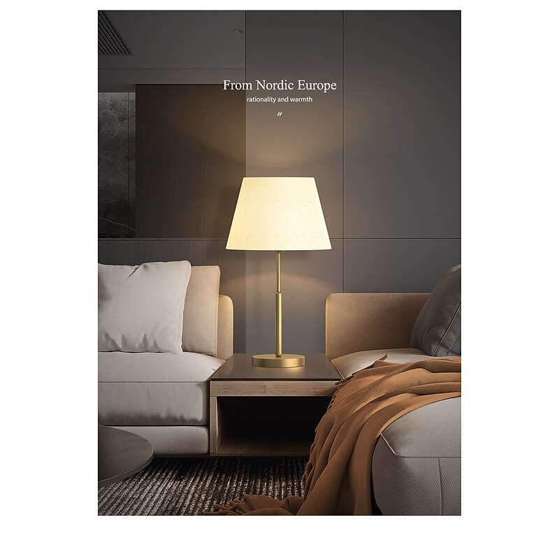popular ! LED Table Lamp Gold Brass Fabric up-to-date comfortable White Bedside Table Lamp Applicable to Living Room Bedroom Office Bedside Cabinet and Bookcase 110-240V