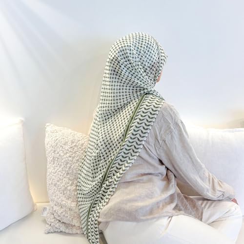 Palestinian Scarf, Shemagh Scarf, 71x28 Inch Chiffon Hijab Scarf, Printed Palestine Scarf, Sun Protection Dustproof Desert Scarf, Muslim Arab Head Scarf for Men Women, Hijab Scarf