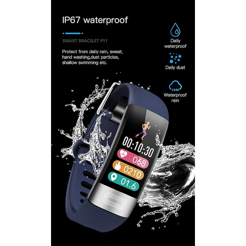 P11 PLUS Smart Watch 0.96 inch Smart Wristbands Fitness Band ECG+PPG Pedometer Call Reminder Fitness Tracker Activity Tracker Compatible with Android iOS IP67