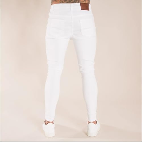 popular ! Jeans Pants Trouser Denim Worn Hole Ripped Stretchy Tight Fitting Trendy Street Wash Thin Casual Small Leg for Men