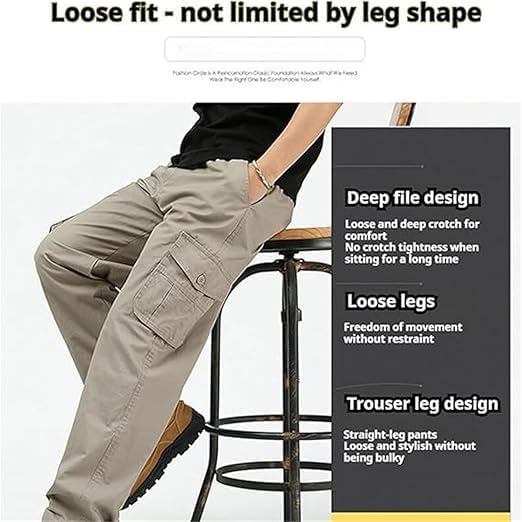 Fabric type: 100% CottonCare instructions: Machine WashOrigin: Made in the USA or ImportedClosure type: Pull OnRELAXED FIT: These cargo pants sit at the natural waist. Designed with a relaxed fit through the seat and thigh, these cargos will keep you cushy during any task.Ultra Flexibility: Relaxed fit tactical cargo pants elastic waistband and hidden drawstring deliver a fit that feels custom-made. Stretching up to 10 inches, these pants for men move with you and adapt to your size, so you’re always comfortable.QUICK-ACCESS STORAGE: Equipped with 6 pockets for maximum storage capacity. 2 side cargo flap pockets, 2 slash pockets, and 2 back patch pockets, for easy-access storage. Great for safely storing your cell-phone, tools, wallet, and other personal items or gadgets.Effortless Dressing: ultra comfort flex fit multi-pocket durable pants, The pull-on design means no buttons or hassle—just slip them on and go. With belt loops for added versatility, you can dress them up or keep it casual.Versatile Utility: From the outdoors to work, this pant is built for versatility with a timeless silhouette and extra storage. pants adapt to every part of your day. Whether you’re working, exploring, relaxing, or tackling home projects, they deliver the perfect balance of comfort and style. Ready for anything, anytime. Perfect for everyday use. first-class materials and excellent craftsmanship ensure long-lasting durability.