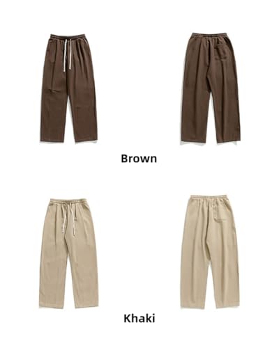 Yollmart Mens Winter Fleece Pants Joggers Drawstring Waist Athletic Pants Cotton Loose Straight Sweatpants
