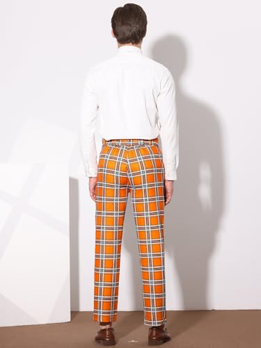 popular ! Lars Amadeus Men's Plaid Dress Pants Flat Front Business Trousers Checked Suit Pants