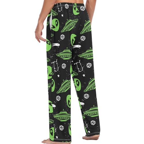 popular ! Pigsaly Men's Pajama Bottoms Green Alien Mens Pajama Pants Space Ufo Cotton Pj Bottoms Sleepwear Lounge Pants M