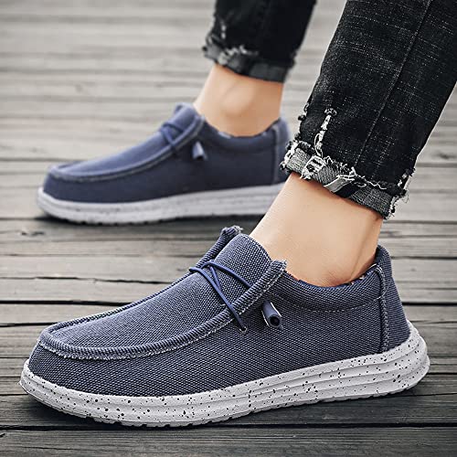 YONGJIA Men's Wally Lace Up Loafers Canvas Slip-on plush Light-Weight Walking Driving Shoes
